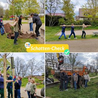 Im Rahmen der Aktion „Schatten-Check“ haben mehrere Mitglieder des KiJuPa zusammen mit Mitarbeitern des Bauhofes, Umweltamtes und der Kinder- und Jugendförderung am vergangenen Dienstag drei Bäume auf dem Mehrgenerationenspielplatz in der Waldstraße gepflanzt.