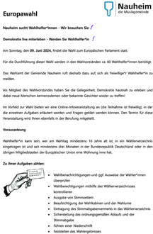 Aufruf Wahlhelfer Europawahl am 09. Juni 2024