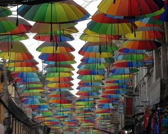 Lasst uns lustwandeln unter einem, ähem: Vielen Regenschirmen am Abend ...