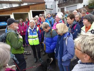 Vor der Begehung des Rinderbachtales erläutert Wanderführer Dieter die Tour.