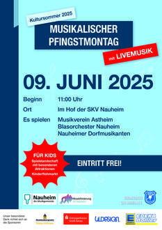 Ein buntes Familienfest erwartet die Besucher am Pfingstmontag im Hof der SKV Nauheim. Ab 11:00 Uhr sorgt ein abwechslungsreiches musikalisches Programm für beste Unterhaltung: Von traditionellen Blasmusikklängen bis hin zu beliebten 80er-Hits und Filmklassikern ist für jeden Musikgeschmack etwas dabei.
