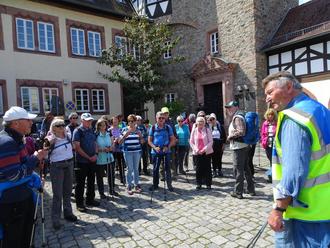 Wanderführer Reinhard Roth begrüßt die OWK’ler an historischer Stätte und gibt Hinweise auf die Tour.