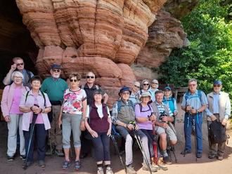 Bemooste Felsen in jeglicher Formation bestaunten die OWK’ler. Besonders beeindruckend waren nach etlichen Bachüberquerungen die riesige Bundsandsteinhöhle mit einer Quelle im Bärenfelsen und der bekannte Bruderfelsen.