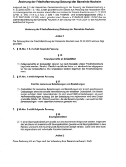 Änderung der Friedhofsordnung (Satzung) der Gemeinde Nauheim