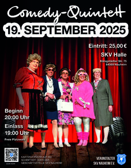 Am 19.09.2025 um 20:00 Uhr (Einlass ab 19:00 Uhr) macht das Comedy-Quintett Halt bei der SKV Nauheim – und bringt eine geballte Ladung hessischen Humors mit!