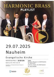 Seit 1991 sorgt Harmonic Brass für großen, eleganten Blechbläserklang rund um den Globus: Carnegie Hall New York, Arts Center Seoul, Endler Hall Kapstadt, Gewandhaus zu Leipzig – und Ev. Kirche in Nauheim, wo sie zum dritten Mal gastieren.