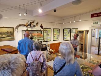 Zahlreiche interessante Details zu den Exponaten des Museums der Gemeinde Stockstadt am Rhein erfuhren die Teilnehmer der Abendführung am vergangenen Freitag (21. Juli). Museumsleiter Jörg Hartung führte die Gäste durch das ehemalige Verwalterhaus des Hofgutes Guntershausen, die sich im Anschluss an die eineinhalbstündige Führung noch mit Kühkopf-Apfelwein und Spundekäse stärkten.
