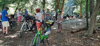 Vom gemeinsamen Treffpunkt aus, der Schutzhütte am Mönchbruchpfad, radelten 20 Teilnehmer zum Raunheimer Waldsee. Attraktion ist dort der Pinta Beach. Die Tour führte am Jagdschloss Mönchbruch vorbei und weiter auf schattigen Waldwegen.