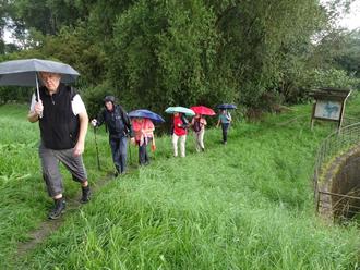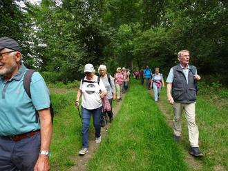 Bei der Satellitenmessstelle ging es hoch auf den Damm zum Kammerhof. Nach Trampelpfaden und Wiesenwegen überquerte die Gruppe den Altrheinarm, wo sich leider die Schildkröten nicht blicken ließen. Zwischendurch brachte Thomas Arnold den Naturverbundenen einiges zu Flora und Fauna im Naturreservat näher.