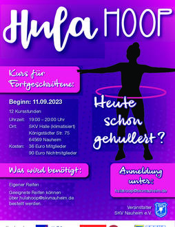 Die SKV Nauheim startet ab dem 11.09.2023 mit einem neuen Hula-Hoop-Kurs für Fortgeschrittene.