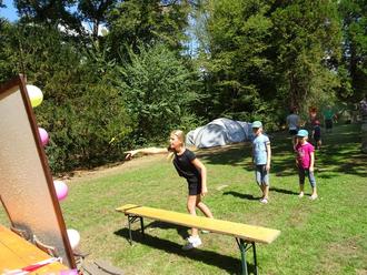 Getroffen haben junge Gäste den auf der großen Wiese extra für sie aufgebauten Wurfclown mit Tennisbällen und die Luftballons mit den Pfeilen. Kleine Geschenke lockten als Belohnung. Auch für Jung und Alt war die Tombola ein Anziehungspunkt.