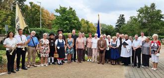 Am Ende der Gedenkfeier hatten sich Mitwirkende, Ehrengäste und Teilnehmer vor dem Ehrenmal der Heimatvertriebenen versammelt.