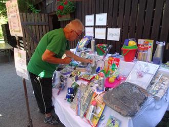 2022: Die Gewinne für die Glückstombola werden aufgebaut.