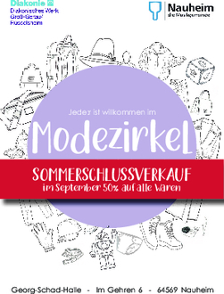 Jede:r ist willkommen im Modezirkel, Georg-Schad-Halle, Im Gehren 6, 64569 Nauheim. Sommerschlussverkauf im September 50 % auf alle Waren.