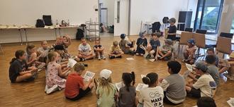 Am Mittwoch war der Kinder- und Jugendkulturbahnhof Ort der Ferienspiele. Damit die räumliche Kapazität nicht an ihre Grenzen stoßen würde, wurden die Kinder in 3 Gruppen eingeteilt. Jeweils im Wechsel konnten alle an den 3 verschiedenen Angeboten teilnehmen.