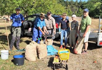 Die ca. 40 Apfelbäume hatten im Frühjahr reichlich Früchte angesetzt. Aufgrund der extremen Kombination von Hitze und Trockenheit im Sommer sowie des sandigen Bodens im Seichböhl haben die Bäume ihre kleinen Früchte früh abgeworfen, eine Überlebensstrategie. Darüber hinaus leiden die Kernobstbäume unter der Rußrindenkrankeit, ein Pilz, der die Rinde zerstört. Trotz allem können sich die Mitglieder ausreichend mit Tafelobst versorgen. Ein Teil wurde der Groß-Gerauer Tafel gespendet und das Fallobst zum keltern in Trebur abgeliefert.
