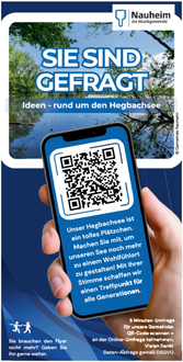 Flyer mit Informationen und einem QR-Code zur Online-Umfrage werden an zentralen Stellen in Nauheim ausgelegt sowie bei bevorstehenden Veranstaltungen und Aktionen verteilt.