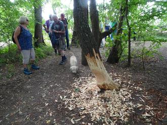 Am Hegbachsee konnte es die Wandergruppe selbst sehen, dass der Biber, unser größtes einheimisches Nagetier, zurück in Nauheim und Groß-Gerau ist. Davon zeugten zahlreiche Weiden am Ufer des Hegbachsees mit den typischen Nagespuren des Bibers. In dem Fall sind die „Beschädigungen“ der Bäume ausnahmsweise etwas, über das sich Naturschützer freuen. Erstaunt waren auch die Wanderfreunde über die verschlungenen Pfade in der „Wildnis“, die sie noch nie gelaufen sind.
