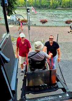 Bingen erreichten sie mit dem Bus, der die Nauheimer am Seniorenhaus abholte. Das Einsteigen fiel selbst Gehbehinderten leicht, denn das Gefährt verfügte über einen Aufzug.