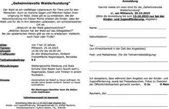 Anmeldungen gibt es ab dem 28.09.2023 online auf der Homepage der Gemeinde, als Flyer im Rathaus, in der Bücherei, im X-Presso und im Büro der Kinder- und Jugendförderung. Anmeldeschluss ist am 13.10.2023. Bitte die Anmeldungen ausgefüllt und unterschrieben abgeben/einwerfen bei der Kinder- und Jugendförderung, Weingartenstraße 51, 64569 Nauheim oder senden an gsattler@nauheim.de.
