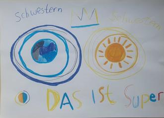 Eines Tages wurden sie von der Trauer überflutet, so dass kein Stück Liebe zu ihren Schwestern da war und sie verließen sich. 15 Jahre lang gab es keinen Augenkontakt mehr zu ihnen und sie vergaßen einander. Die Sonne war 15 Jahre lang durch und durch da, bis die Menschen nicht mehr konnten. Sie sahen sein, dass sie den Mond brauchten. Als der Mond die Sonne eines Tages fand, merkte er, wie erschöpft sie war und ging zu den Menschen. Von da wurden Sonne und Mond gleichbehandelt.