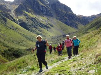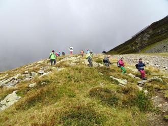 Wer nachts aufwachte, hat ihn gehört: Regen – und der endete erst am späten Morgen. Dann aber ging es los, ohne den Regenschirm auspacken zu müssen. Eine Planänderung war notwendig. Mit der Versettlabahn in Gaschurn ging es hoch hinaus. Auf breitem Weg schritt die Gruppe zur Alpe Nova. Sie war leider nicht mehr bewirtschaftet, aber die Hüttenwirte hatten noch Tische und Bänke für die Wanderer stehen lassen. Und so stand einer genussvollen Vesper aus dem Rucksack nichts im Wege.