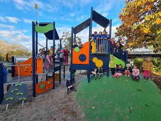 Foto: Sophie Lukas - Die Kinder der Kita Neckarstraße haben das neue Spielgerät erstürmt. © Gemeinde Nauheim