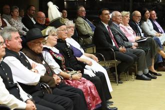 Ehrengäste der Veranstaltung und Trachtengruppen aus den verschiedenen Vertreibungsgebieten.