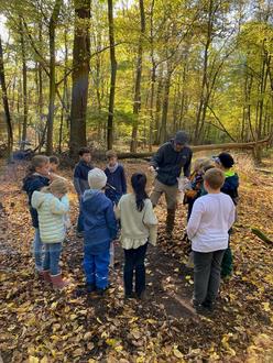 Ein Teil machte sich an die Arbeit, ein Tipi aus Stöcken zu bauen, andere sammelten Blätter oder konnten Waldbewohner in einer Becherlupe beobachten und sie dann wieder freilassen. Wer wollte, konnte mit verschiedenen Bestimmungsbüchern Tiere und Blätter bestimmen oder sich beim Versteckspiel oder Balancieren auf Baumstämmen vergnügen.
