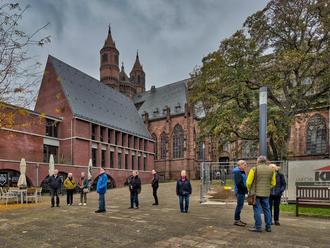 Kurz vor 14 Uhr ging es mit dem Bus weiter zum Wormser Dom, St. Peter, eine der bedeutendsten romanischen Kirchen Deutschlands. Die Gruppe wurde von einer sachkundigen Führerin begleitet. Wir erhielten eine Einführung in die Baugeschichte des Wormser Doms, der im 12. Jahrhundert errichtet wurde und in seiner massiven Bauweise und kunstvollen Gestaltung die typische romanische Architektur widerspiegelt.