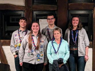 die alte + neue Stammesleitung Fabian Burger, Jennifer Winzer, Finn Walbrecht, Barbara Spieler, Melissa Weber