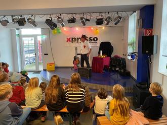 Zum 25-jährigen Geburtstag des Kinder- und Jugendkulturbahnhof X-Presso, lud die Kinder- und Jugendförderung Nauheimer Grundschüler zu einer Veranstaltung mit dem Zauberer Zinnobro, alias Eberhard Metsch-Goralsky, aus Wiesbaden ein.