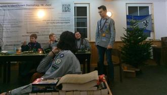 Die Welt regt sich auf über Korruptionsfälle in Europa - unaufgeregt bleiben da die Gründung des Weltverbandes der Erwachsenen Pfadfinder 1952 www.isgf.org, ebenso wie das 70 Jahre Gedenken zur Aufnahme der Nauheimer Siedlung in die CPD Gau Ried. Dazu begrüßte Stammesführerin Jenny Winzer und Organisator Finn Walbrecht nach einstündiger Winter-Wanderung die angeschneiten 3 Mädels und 21 Jungs aller PfadfinderAltersstufen im Tagesraum des Jugendzeltplatzes Wildpark zur Wald-Weihnachtsfeier. Für die Gruppenleiter hatte der Kirchenvorstand Überraschungs-Umschläge mitgegeben und die Eltern spendierten Selbstgebackenes. Ankommend lief eine digitale Diasschau, was 2022 bei den Nauheimer Pfadi geschah: www.Bundeslager.vcp.de, www.Jugendkirchentag.de, Kanutag, Lasertag, Stammeslager, usw. Es folgte eine Vorstellungsrunde: Name/Gruppe/ was war Dein schönstes Erlebnis 2022?