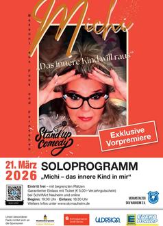 Lachen ist bekanntlich die beste Therapie – und genau darauf setzt Michaela Hartnagel-Keil in ihrem neuen Stand-up-Comedy-Programm „Michi – das innere Kind in mir“. Die bekannte Sitzungspräsidentin der hessischen Weiberfastnacht präsentiert am Freitag, den 21.03.2025, ihr erstes Solo-Comedyprogramm im Rahmen einer exklusiven Vorpremiere mit begrenzter Platzanzahl in der SKV-Halle Nauheim.