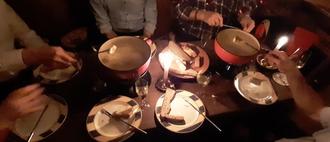 Aus der Schweiz brachte die ehemalige Gruppenleiterin Original-Zutaten, Gefäße und Rezept fürs Fondue mit, jede:r was kulinarisch Ergänzendes wie spezielle Getränke, Tiramisu, Mandel-Buttermilchkuchen und feinen Obstsalat. Hier für Interessierte das Original-Rezept: