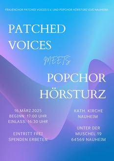 Der PopChor Hörsturz (GVE Nauheim) lädt den Frauenchor Patched Voices zu einem gemeinsamen Konzert nach Nauheim ein. Die beiden Chöre präsentieren zusammen ein vielfältiges Programm mit ihren ganz persönlichen „Instrumenten des Jahres 2025“.