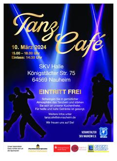 Veranstaltungsort ist die SKV-Halle, Königstädter Str. 75, 64569 Nauheim. Eine Anmeldung ist nicht erforderlich. Bei Fragen können sich Interessierte per Mail an tanzcafe@skvnauheim.de wenden.