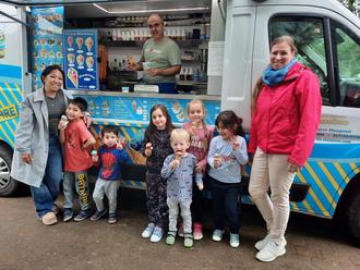 „Es war eine tolle, mutige Erfahrung. Denn sich zu trauen, den eigenen Eiswunsch zu bestellen, war für manche Kinder sehr herausfordernd. Umso größer war danach der Stolz über den eigenen Mut und das Eis“, berichtet Kitaleiterin Sandra Knodt.