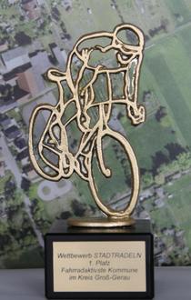 Der 2021 erstmals verliehene Wanderpokal für die fahrradaktivste Kommune bleibt in Riedstadt.