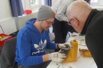 Gemeinschaftlich gewerkelt wird beim Reparaturcafé im alten Rathaus Crumstadt.