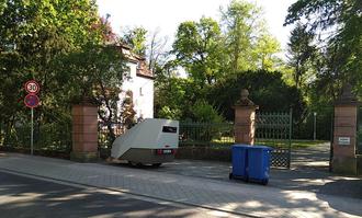 Der Blitzanhänger der Stadtpolizei Riedstadt steht derzeit in der Philippsanlage, in Höhe des Technischen Betriebs von Vitos Riedstadt.