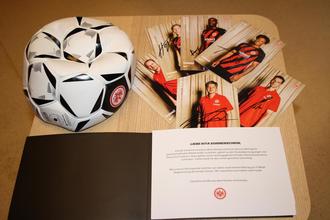 Es dauerte nicht lange, bis ein Postbote ein Päckchen mit dem Absender Eintracht Frankfurt brachte. Gespannt und voller Vorfreude öffneten die Kinder das Paket. Darin war ein Ball mit Autogrammkarten. In einem Brief bedankte sich der Verein für den schön gemalten Umschlag. Die Sachspende solle einen kleinen Beitrag zur Begeisterung der Kinder leisten.