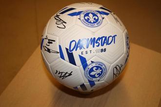 Der signierte Fußball von Darmstadt 98, der zur Versteigerung gespendet wurde.