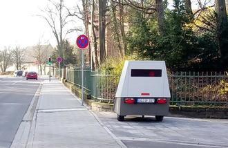 Der Blitzanhänger der Stadtpolizei Riedstadt steht derzeit in der Philippsanlage, in Höhe des Technischen Betriebs von Vitos Riedstadt.