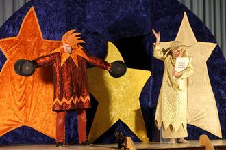 Sie erzählten die Geschichte des kleinsten Sterns am Himmel Wilhellmine, die zur eigenen Überraschung und Empörung ihrer Nachbarn Frau Schlauschnuppe und des Kraftmeier-Sterns Herr Roter Riese zum diesjährigen Weihnachtsstern auserkoren wird. Vor lauter Aufregung wird Wilhellmine immer blasser. Dann bricht ihr auch noch ein Zacken aus der Strahlenkrone und donnert auf die Erde. Wie schließlich doch noch alles gut wird, erlebten Groß und Klein gebannt und verließen das Bürgerhaus mit einem großen Strahlen.
