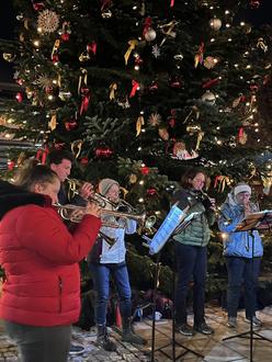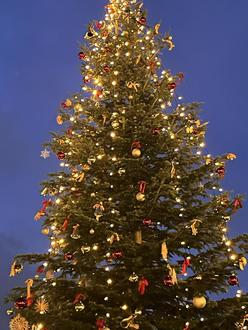 Mit einem reich geschmückten stattlichen Weihnachtsbaum, warmen Lichterketten und sanft angestrahlten Bäumen hüllte sich der Rathausplatz vom 15. bis zum 17. Dezember 2023 in stimmungsvolle Atmosphäre.
