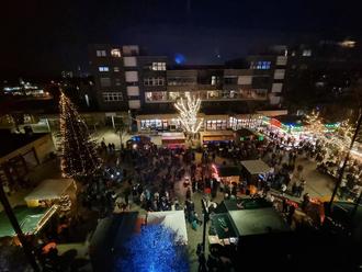 Blick von oben auf den Raunheimer Weihnachtsmarkt 2023