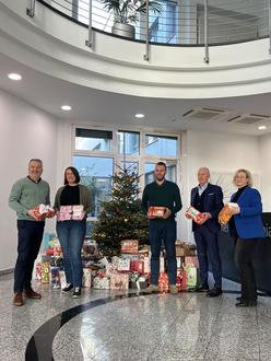 In der Woche vor Weihnachten besuchten Bürgermeister David Rendel, Flüchtlingsbetreuer Jens Grode und Flüchtlingshelferin Olga Kryshtafovych dann die Zentrale von Implenia Deutschland am Prime Parc auf Einladung von Geschäftsführer Matthias Jacob, um die liebevoll verpackten Geschenke für die Kinder in Empfang zu nehmen.