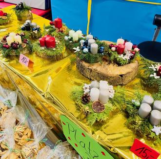 Neben Kaffee, selbstgebackenem Kuchen und liebevoll hergestellten Plätzchen gab es frisches Popcorn. Wer noch weihnachtliche Deko für zuhause oder kleine Geschenke für die Liebsten suchte, konnte hier ebenfalls fündig werden. Der Verkauf selbstgemachter Adventsgestecke ist mittlerweile zur Tradition geworden.