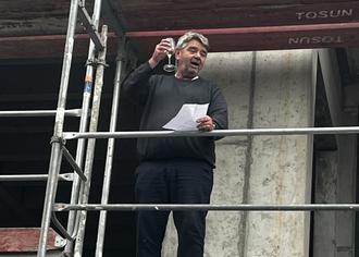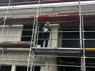 Den traditionellen Richtspruch brachte Matthias Lanz, Inhaber der bauausführenden Firma, aus. Er wünschte Glück und Segen für das neue Haus sowie seine zukünftigen Nutzerinnen und Nutzer.